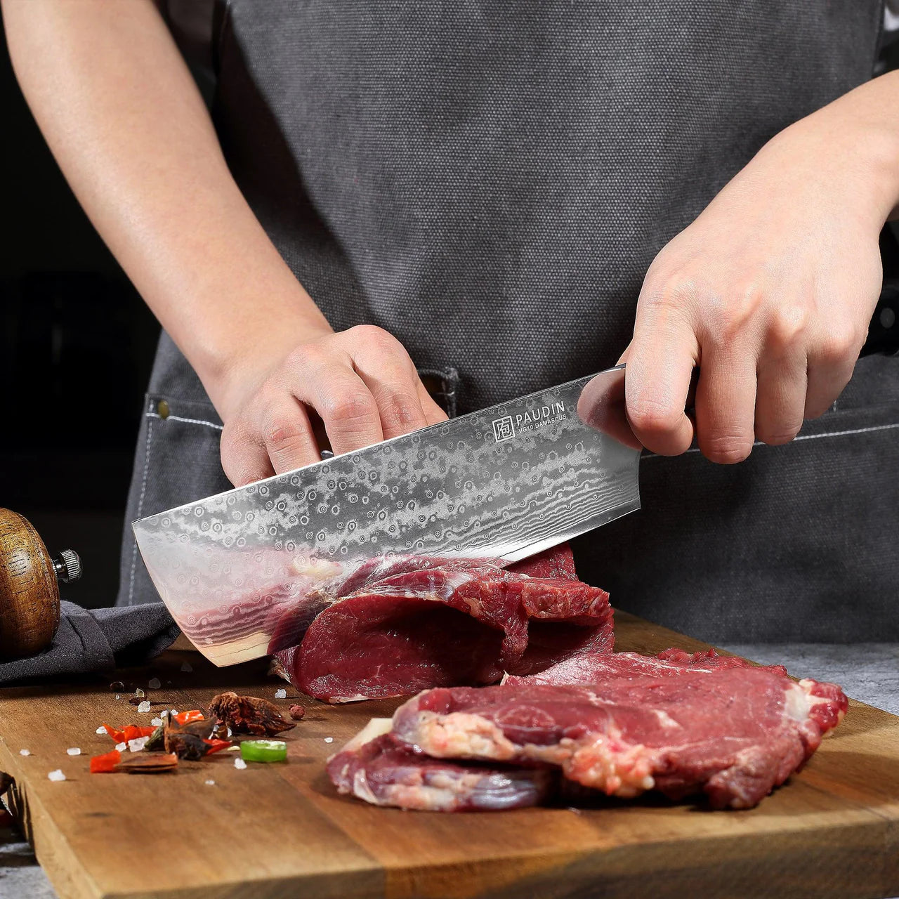 This damascus knives and cleaver are precision forged from high-quality Japanese VG10 Damascus steel with a total of 67 layers. The hardness of the blade can reach 60+ HRC, which makes the cooking knife have a durable cutting edge, excellent toughness and ultra sharp characteristics. At the same time, it has outstanding anti-rust ability, extremely long service life.