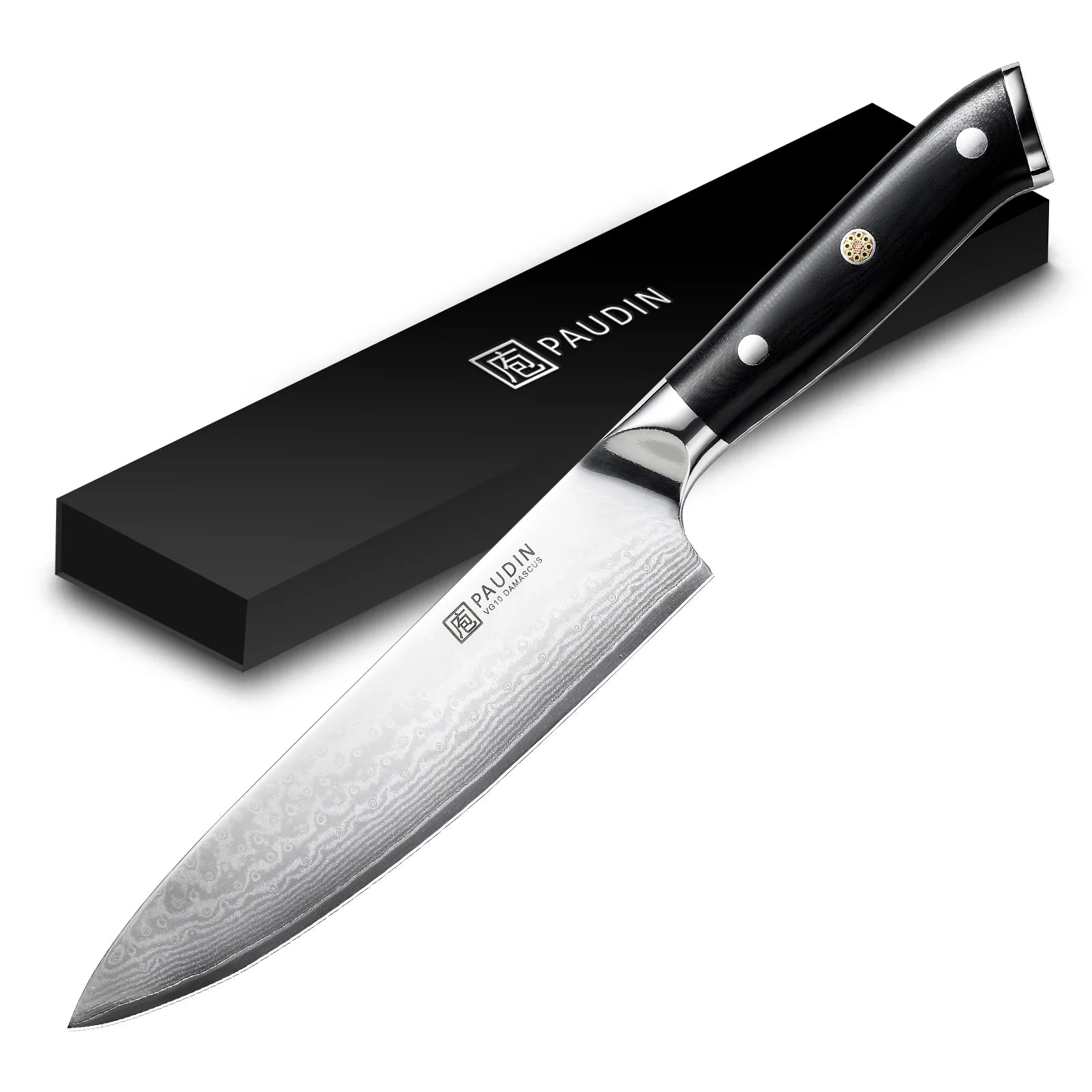 Forged from AUS10 Japanese Damascus steel, the blade combines stunning visual appeal with exceptional edge retention and razor-sharp precision. The ergonomic G10 fiberglass handle is built for durability and comfort — resistant to moisture, wear, and daily kitchen demands.