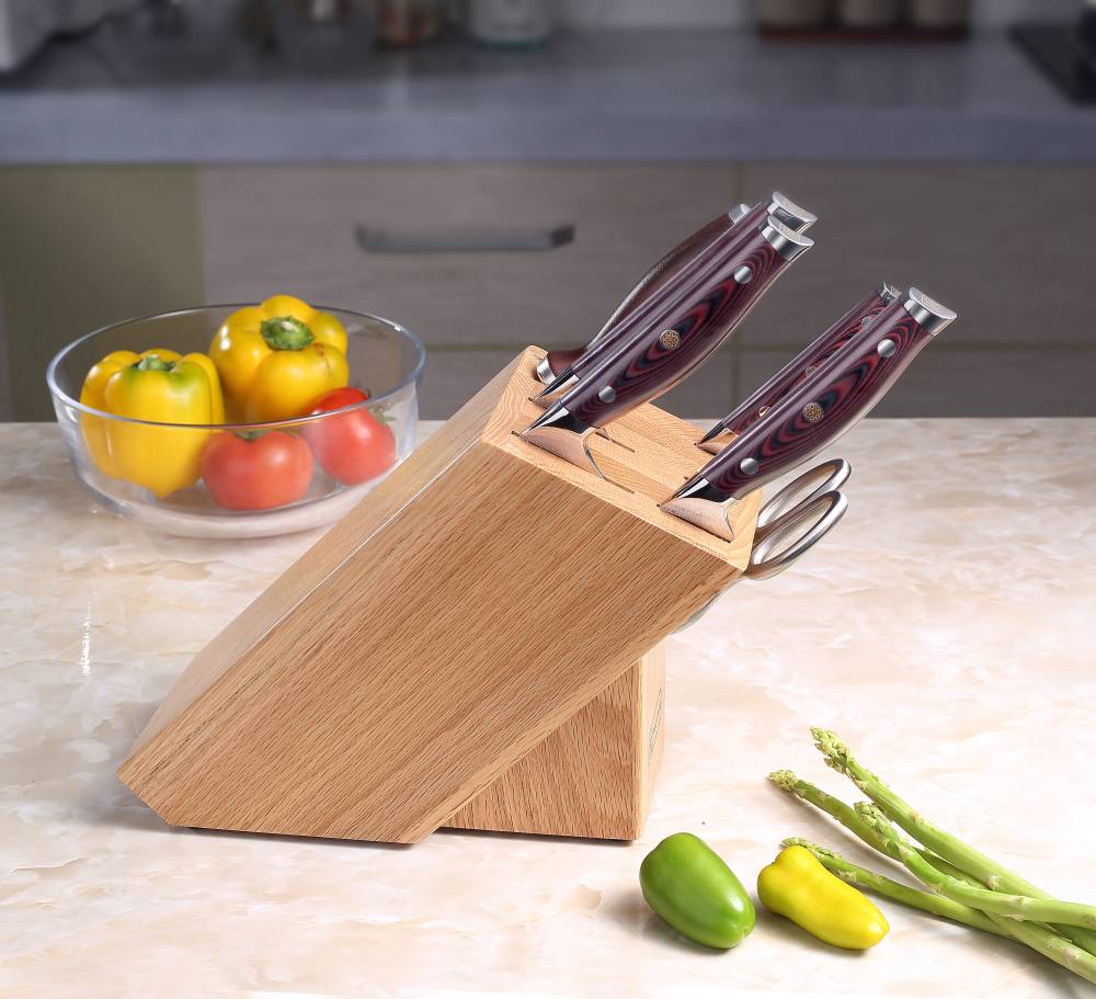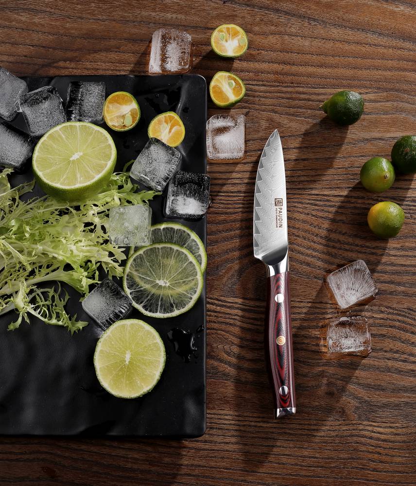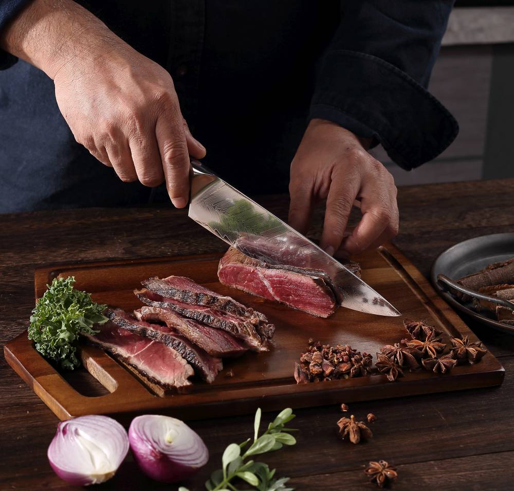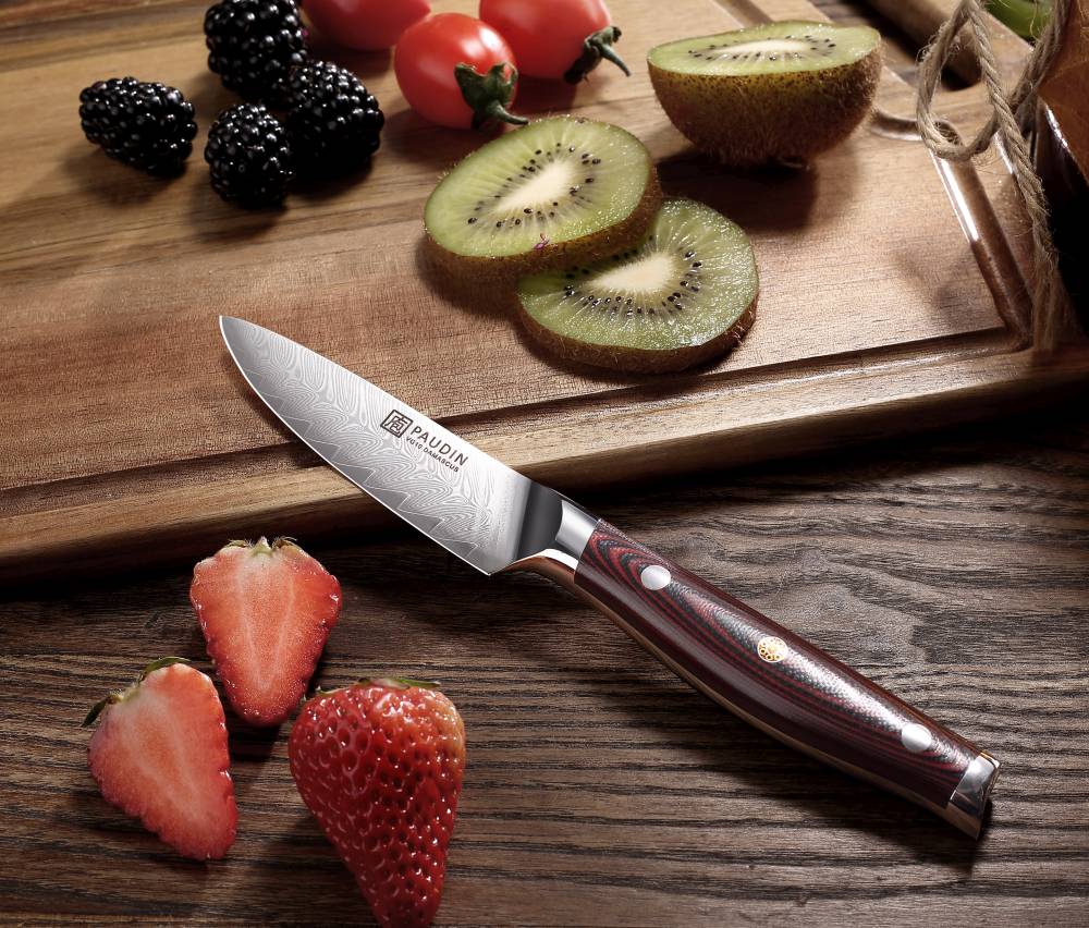 Plume Luxe collection is made of Japanese AUS10 Damascus steel blade and contains Vanadium, which improves the wear resistance and ease of sharpening. While high-quality knives are in the 56 to 58 HRC range, this knives has increased hardness to 62 HRC! As a result, Plume Luxe classifies as an exclusive knives with high toughness, high sharpness, and exceptional corrosion resistance.